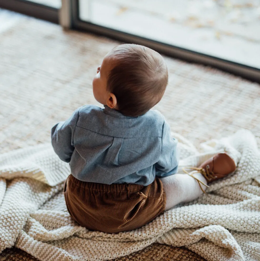La chemise garçon en flanelle GOTS couleur bleu tendre offre une touche de douceur et de chaleur pour les journées fraîches. Son col mao ajoute une note d’élégance moderne, tandis que les boutons en noix de coco véritable apportent une touche de nature et d’authenticité à chaque tenue.