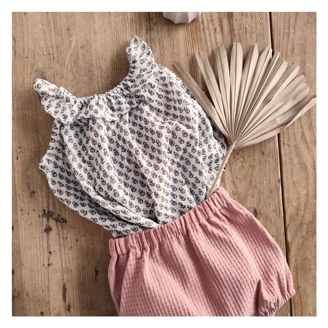 Vous avez la possibilité de créer des looks coordonnés pour vos enfants, avec la robe AGAVE en double gaze de coton fleuri ou encore la barboteuse JASMIN en double gaze à imprimé fleur.