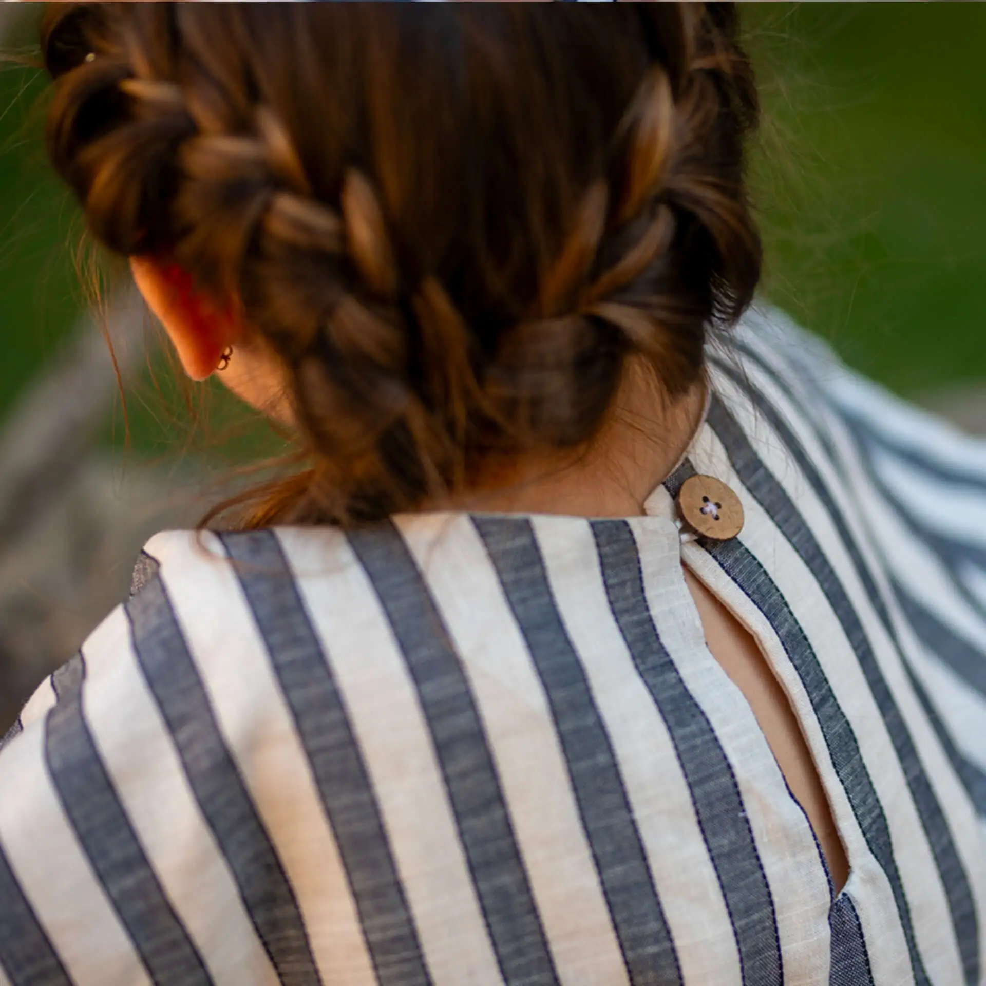 L’attention aux détails est au cœur de la conception de la robe fille rayures Gardenia. Un joli bouton en noix de coco et une délicate goutte d’eau ornent l’encolure, ajoutant une touche de charme naturel à cette pièce déjà remarquable. Ces accents subtils complètent parfaitement le style marin de la robe fille rayures, en lui donnant une touche finale élégante.