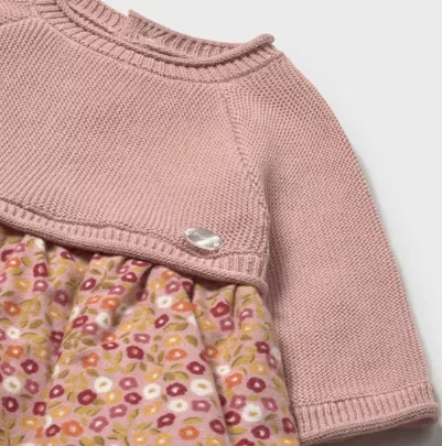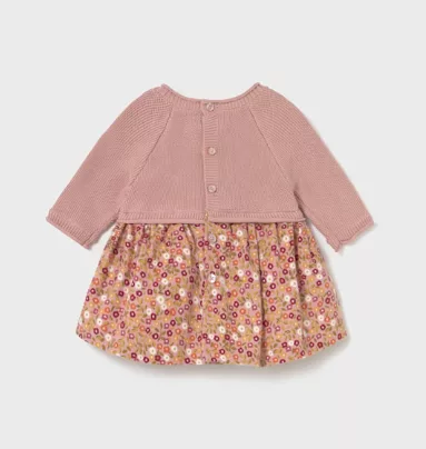 Robe à manches longues pour nouveau-né. Col rond. Fermeture à bouton sur le dos pour faciliter le passage du vêtement. Tissu 100% coton. Confection corps et jupe dans différents tissus pour réaliser un design unique et spécial. Modèle bouclé. Design imprimé.