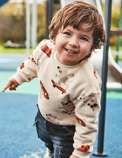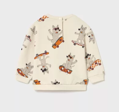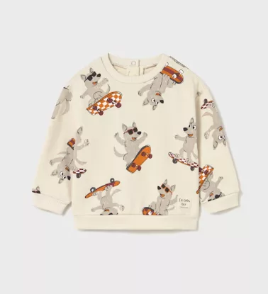 Sweat à manches longues pour bébé. Col rond. Bouton pression sur le col pour faciliter l’habillage. Imprimé petits animaux.